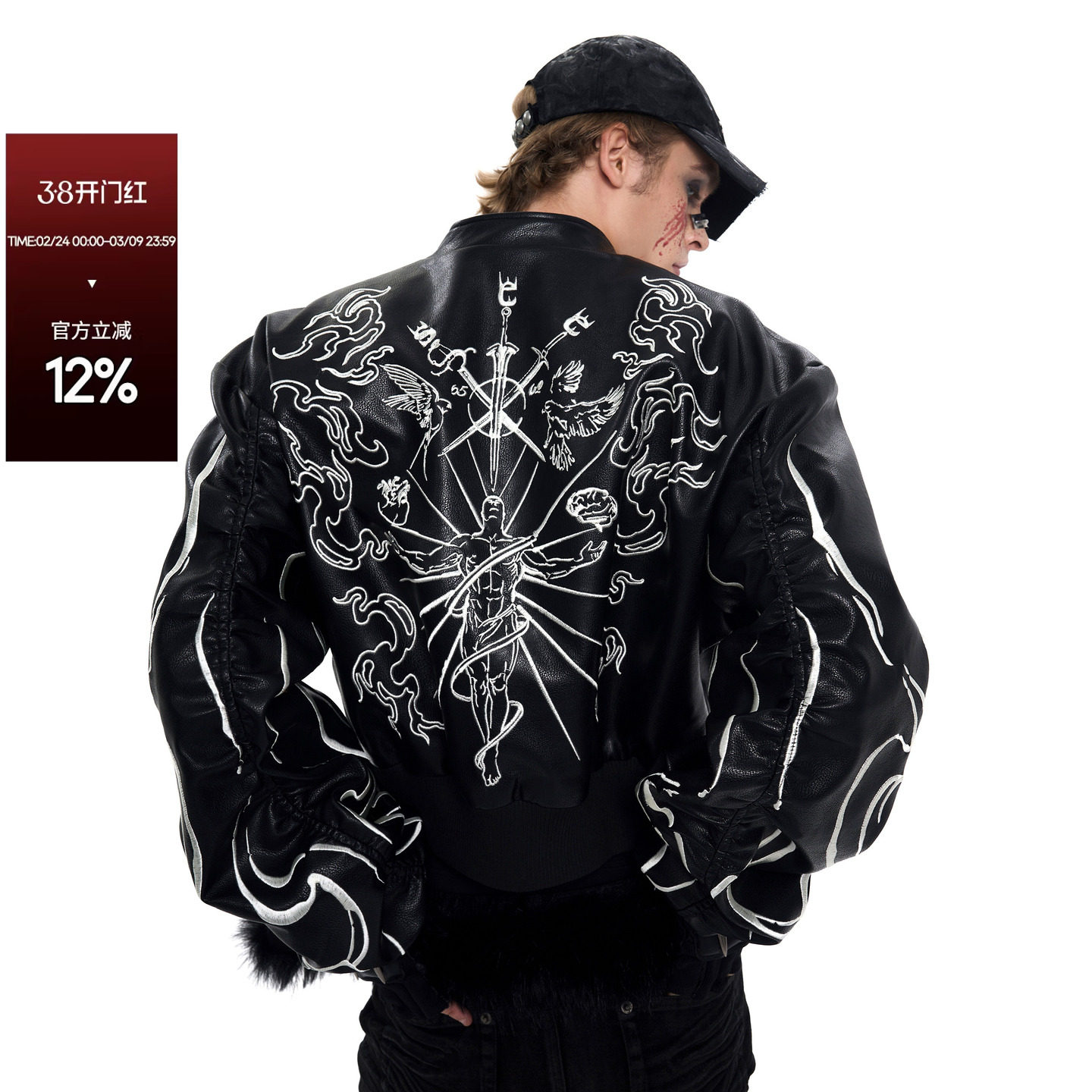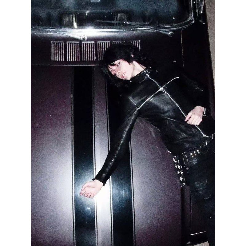 RacerWorldwide detachable fur collar belt burst seat mountain carving leather jacket Cortis Martin is the same style