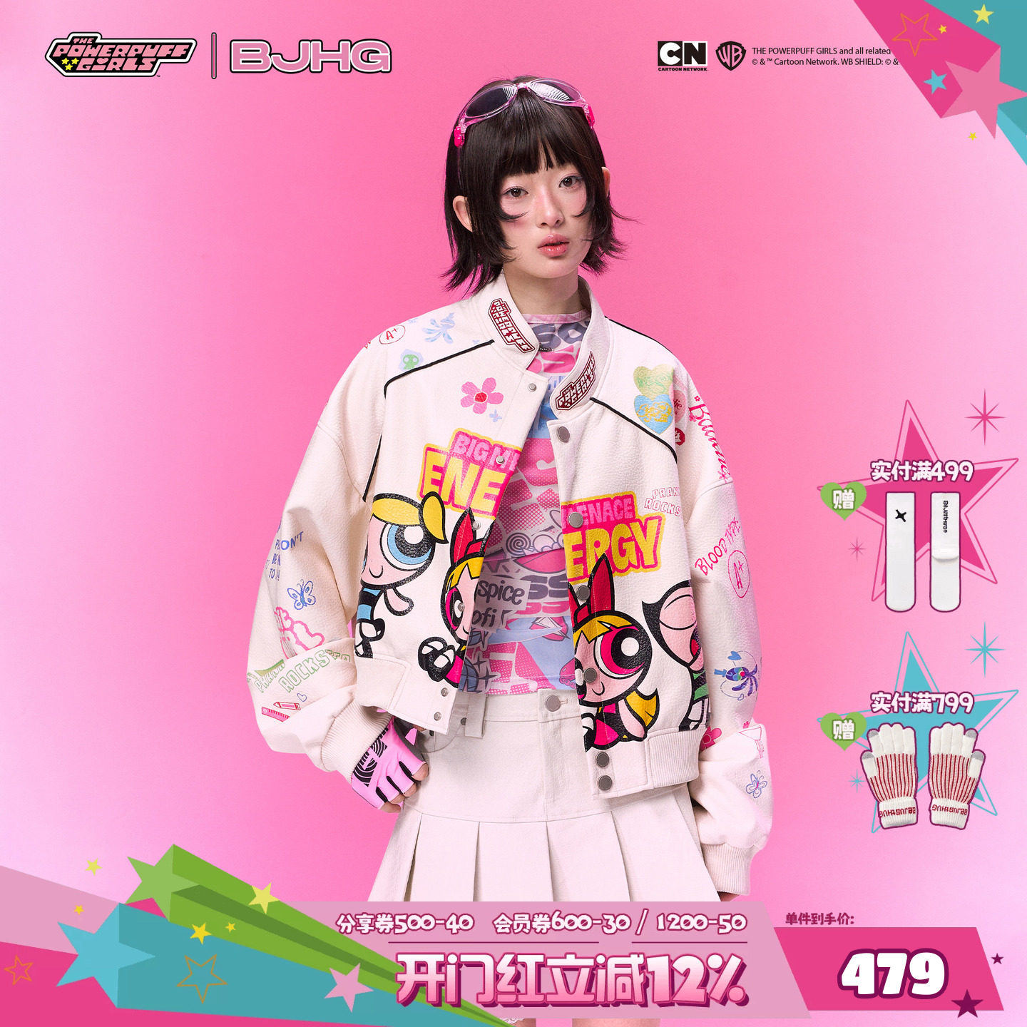 BJHG reckless short leather jacket women's spring print baseball uniform jacket