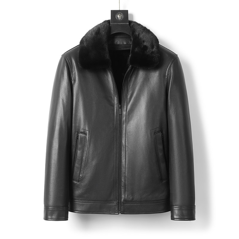 Pierre Cardin mink jacket male middle-aged warm mink fur grass Haining genuine leather whole mink fur integrated coat