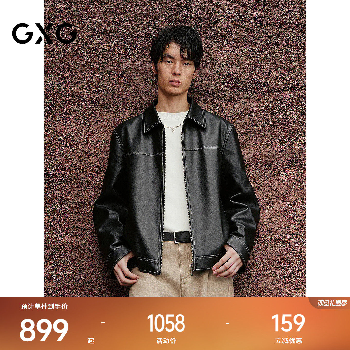 【Cowhide】GXG Men's Leather Leather Jacket Commuter Casual Jacket Lapel Fashion Jacket New 25 Autumn Style