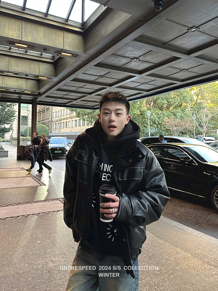 Uniike greasy guest Handsome and warm lambsskin jacket! Winter windproof distressed versatile top jacket