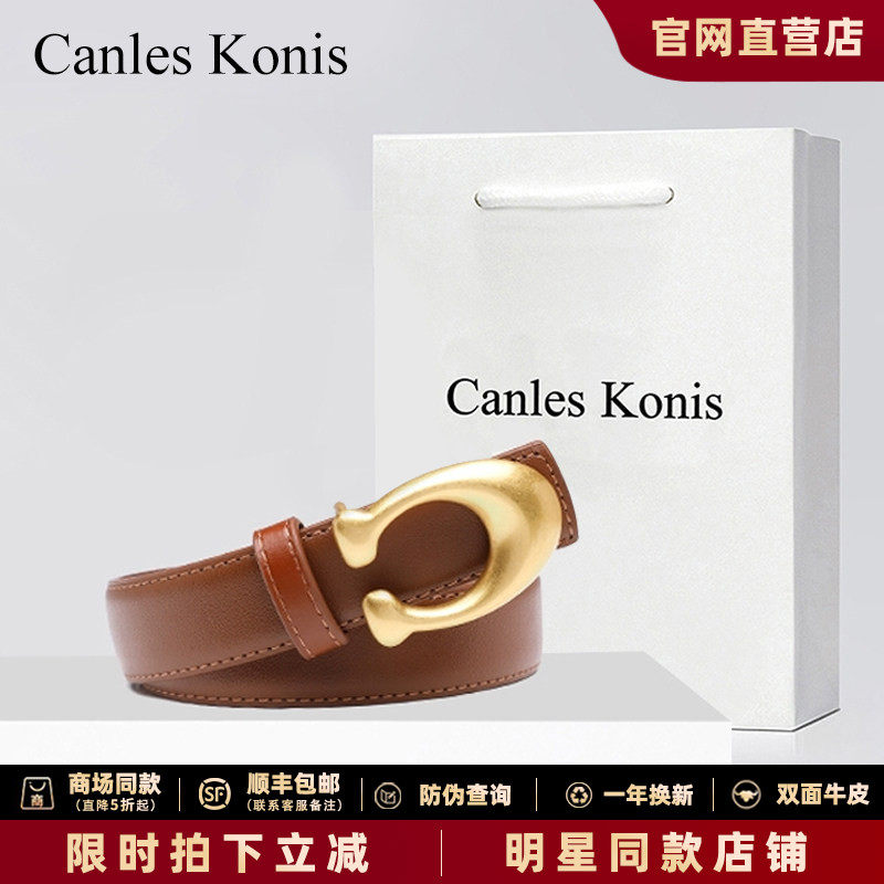 Official website small Canles Konis leather belt women's 2026 new cowhide belt women's design niche decoration