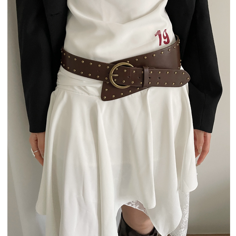 2026 new heavy industry punk style rivet wide belt women's skirt jeans waist seal niche belt accessories trend