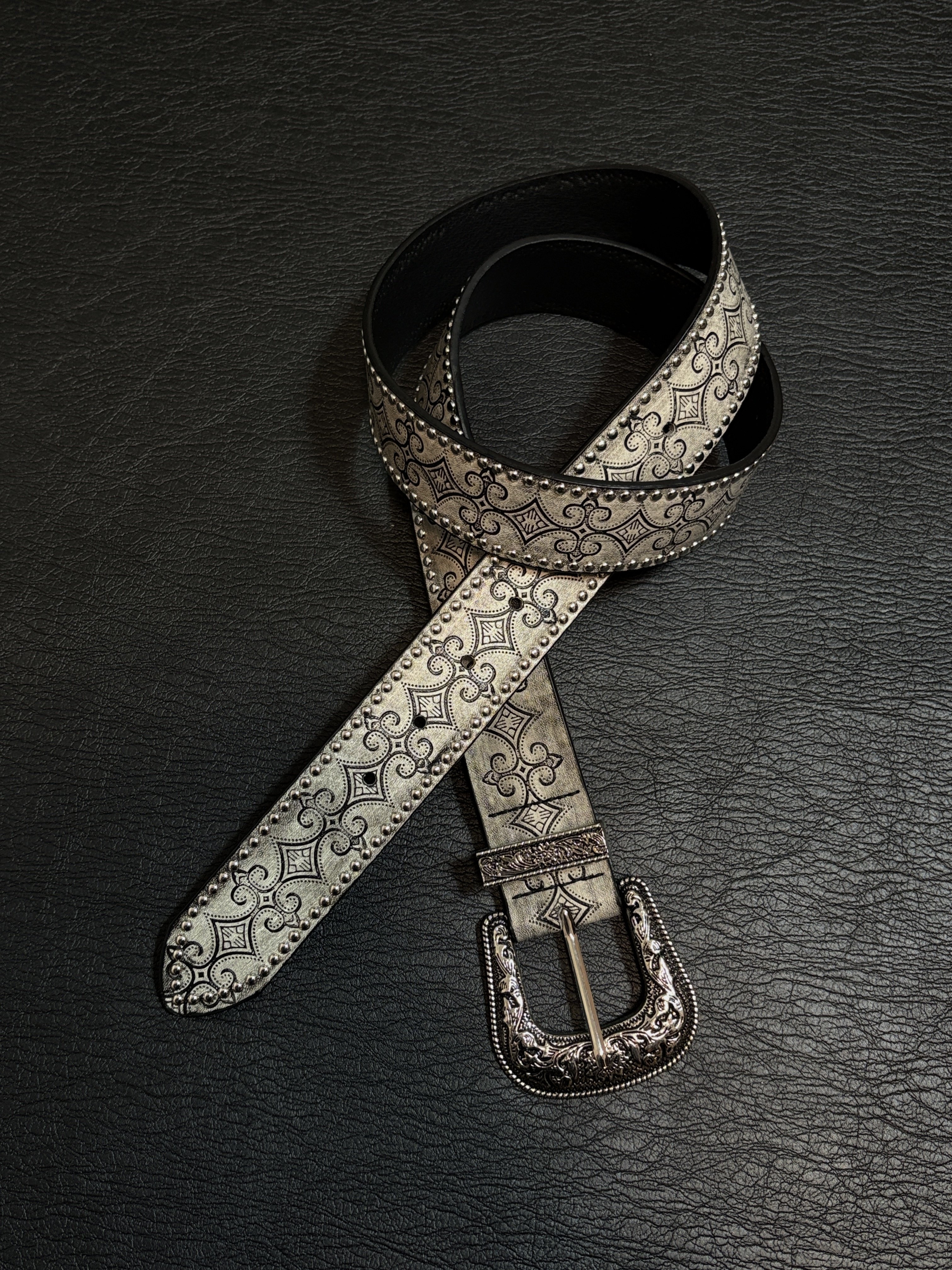 Watch out for cuffs Vintage western studded belt belt vintage carved metal buckle niche minimalist belt