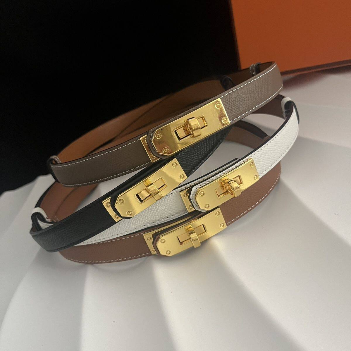 H family kelly thin belt women's leather with coat woolen dress waist decoration pig nose small belt