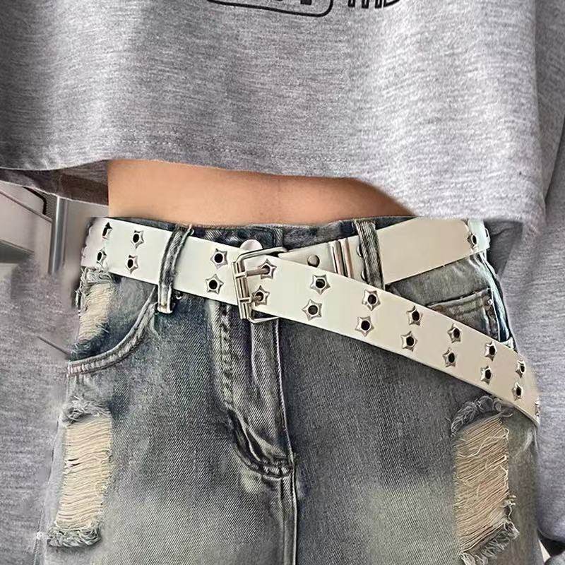 Star Porous American Wide Belt Women 2023 New Trouser Belt Jeans Design Niche Y2K Belt White