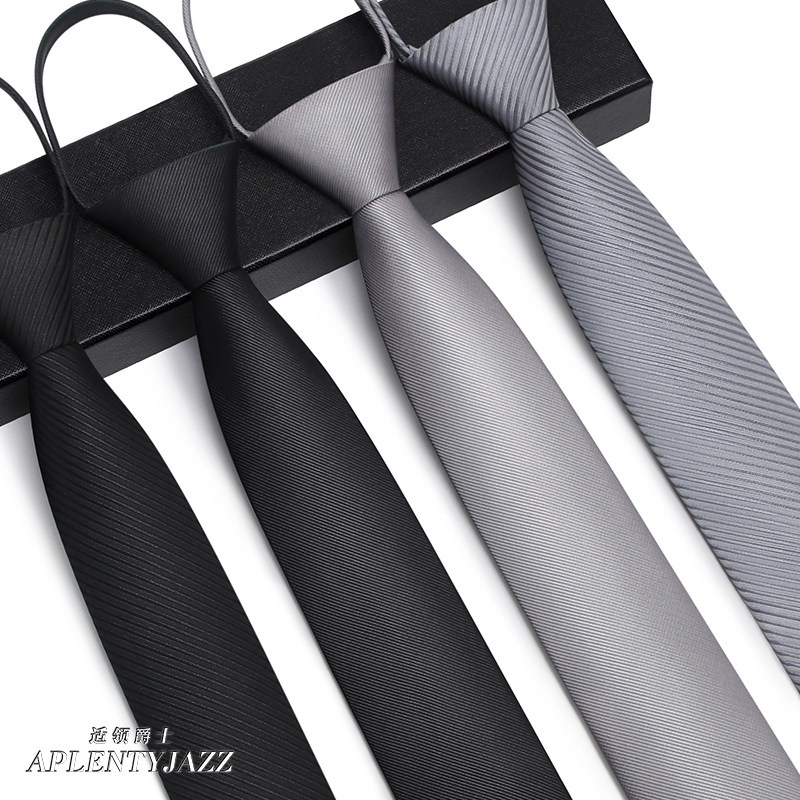 Blue tie men's formal business black gray solid color versatile work suit easy to pull zip tie