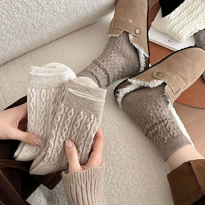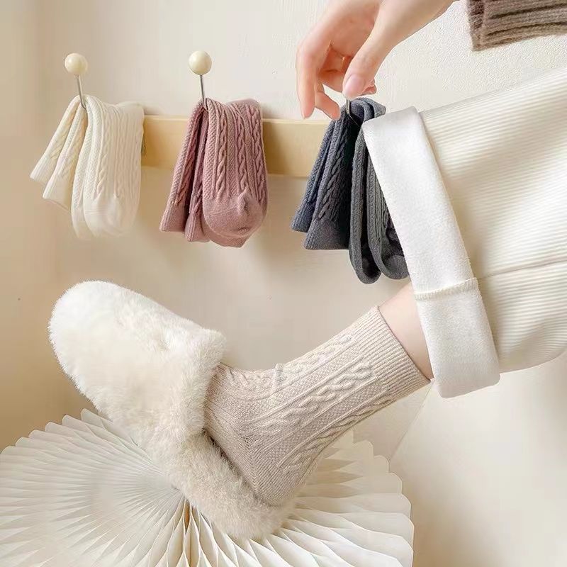 Twist women's socks women's mid-length autumn and winter thickened warm fluff ladies' winter stacked socks long mid-length models
