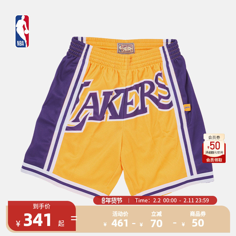 Mitchell & Ness NBA Official Retro Ball Pants BigFace 2.0 Series Lakers Quick Dry Shorts Pants