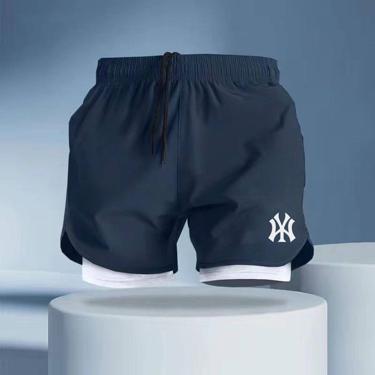 American ice silk quick-drying shorts summer men's running training three-point pants anti-light strap lined gym sweatpants