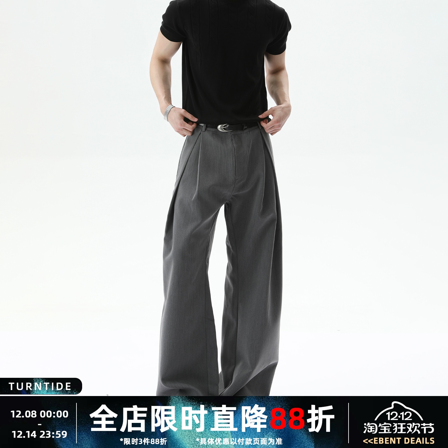 TURNTIDE Three-dimensional A-line silhouette double-pleated scimitar trousers loose commuter cleanfit summer casual trousers