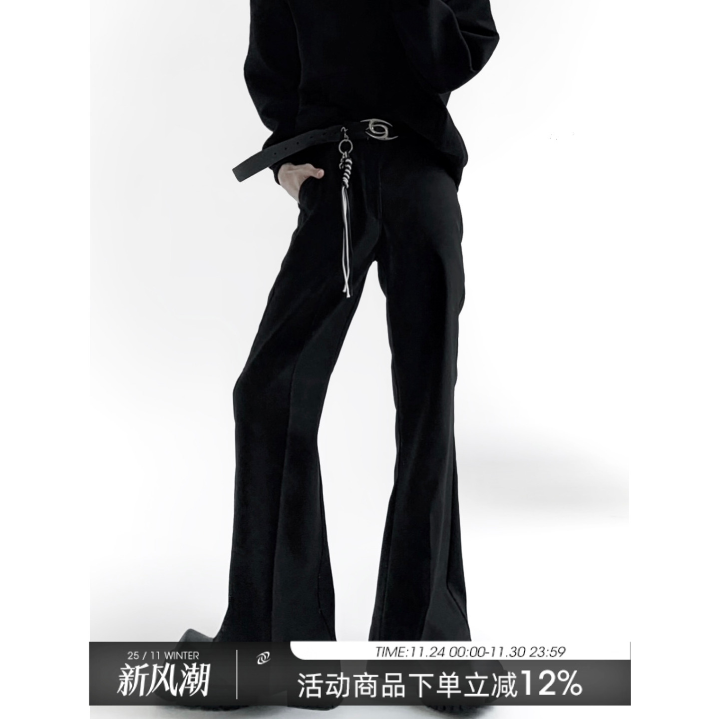 Autumn mountain style/cleanfit black elongated slim micro-flared trousers men's drape-like high-end vibe pants