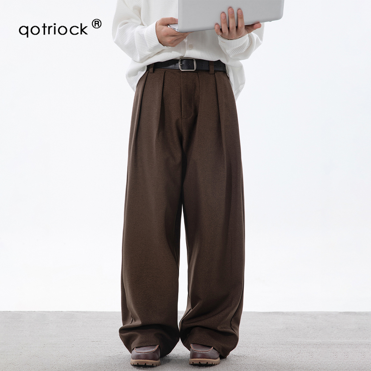 Men's draped straight slacks fall and winter new high-end light luxury versatile wool loose no-iron suit trousers