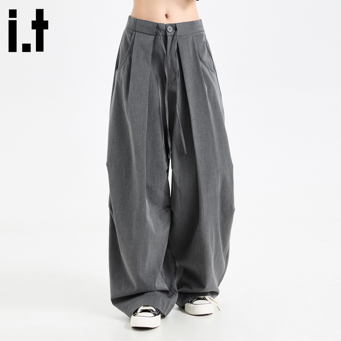 Korean lace-up pleated layered silhouette trousers for men and women, spring and autumn, loose drape, floor-length wide leg casual paratrooper pants