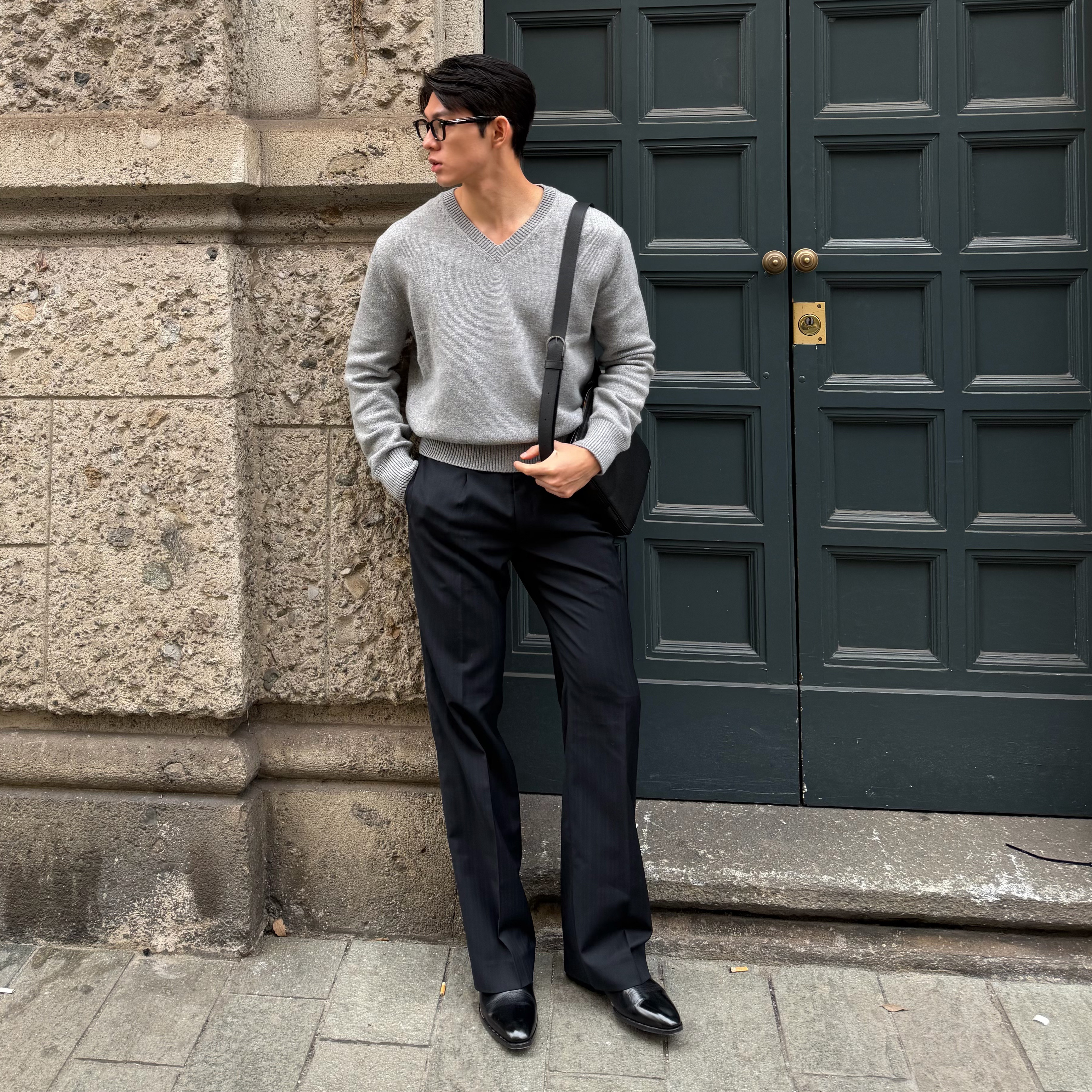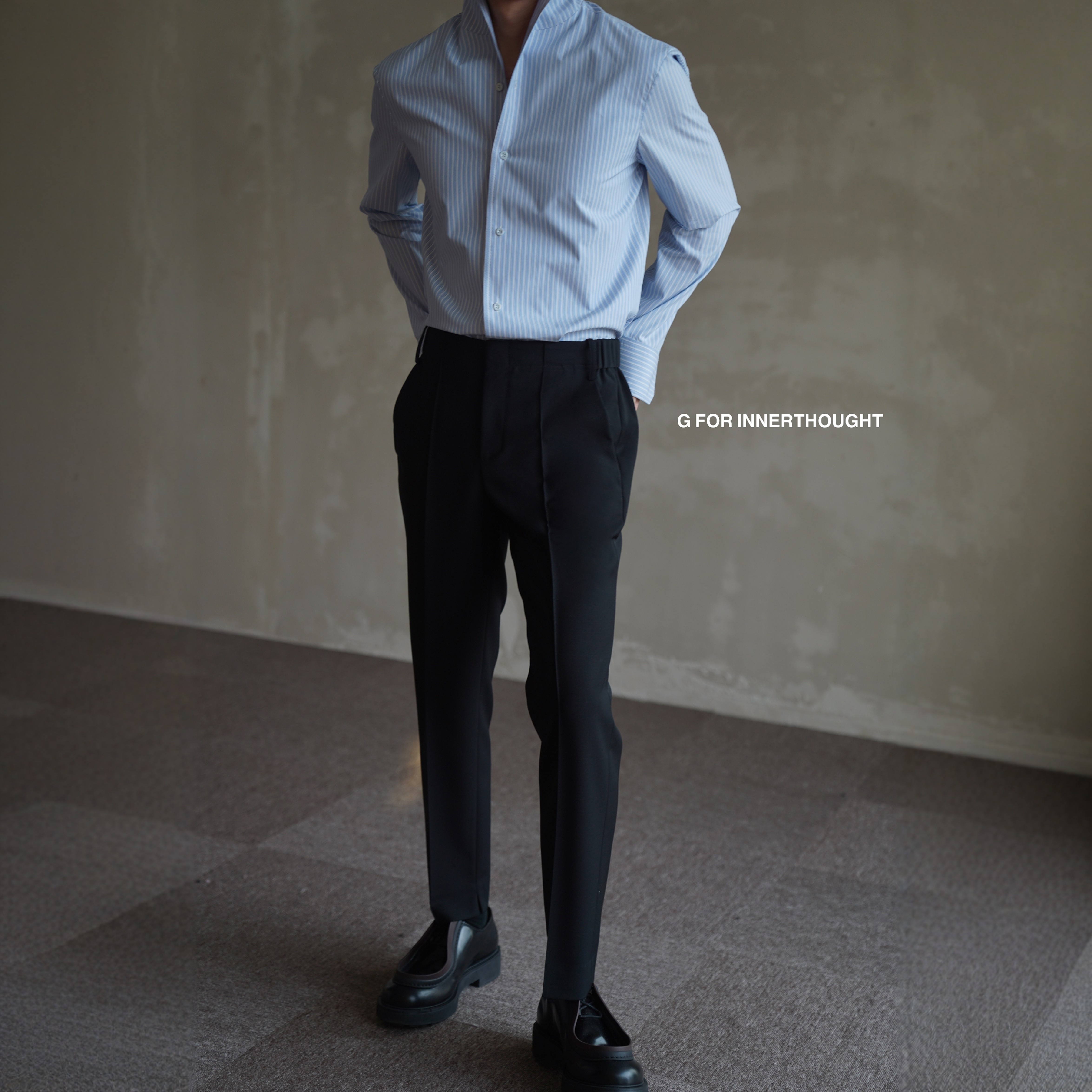 G FOR INNERTHOUGHT composite stretch high-couture knitted wool blend casual suit pants straight boot