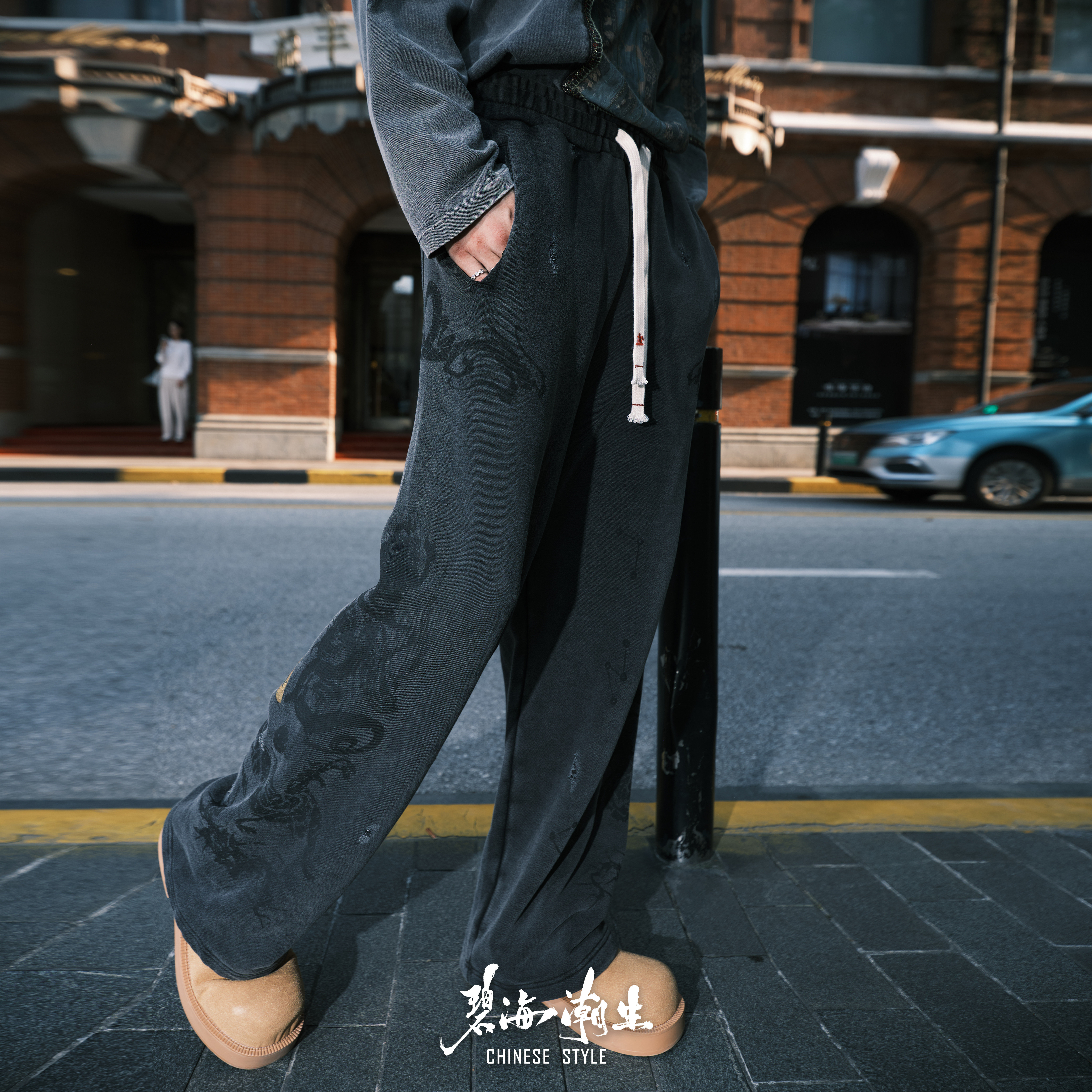 Bihai Chaosheng [Fuxi] autumn and winter new Chinese style national tide heavy wash embroidery casual trousers and sweatpants