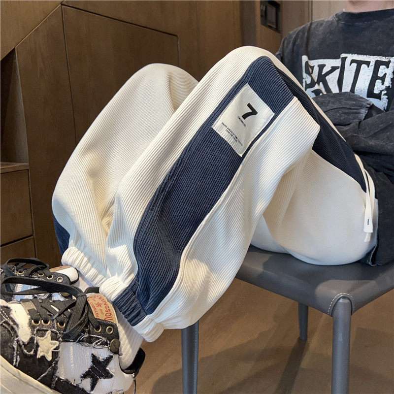Color-blocked corduroy pants men's winter fleece boys' leggings men's youth loose casual trousers