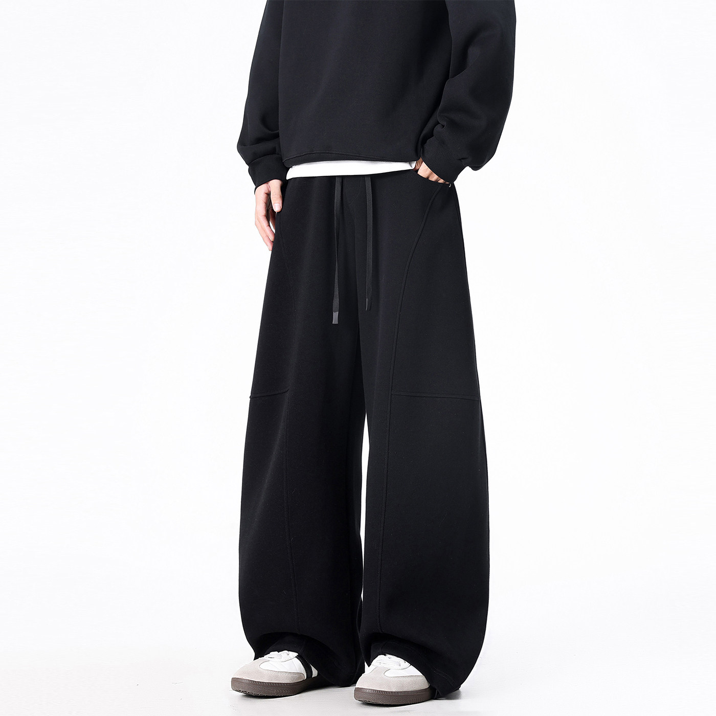 High-end black straight-leg sweatpants, men's winter American trendy brand casual floor-length trousers, high street versatile loose pants