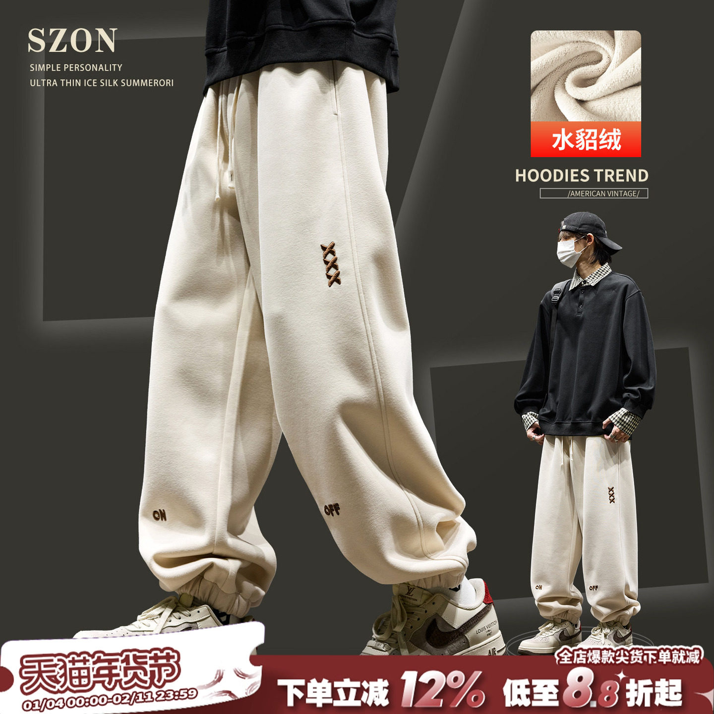 Pants, men's trendy atmosphere, American embroidered sports sweatpants, autumn and winter thickened fleece warm casual leggings