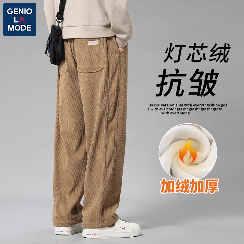 GENIOLAMODE heavy corduroy pants men's autumn and winter fleece casual sweatpants 2025 new teenagers
