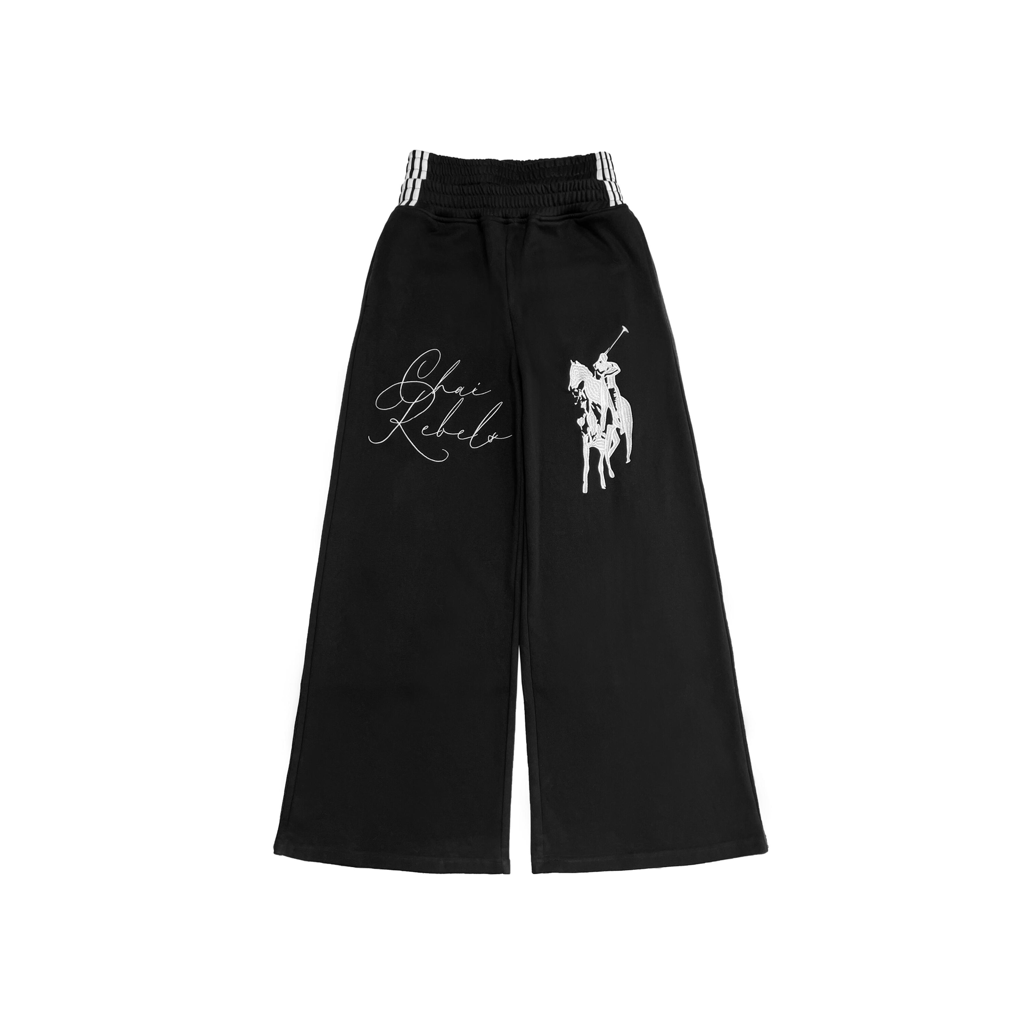 CHAI 25SS Horse Standard Embroidered Reversible Multi-Waisted Black Loose Baggy Sweatpants