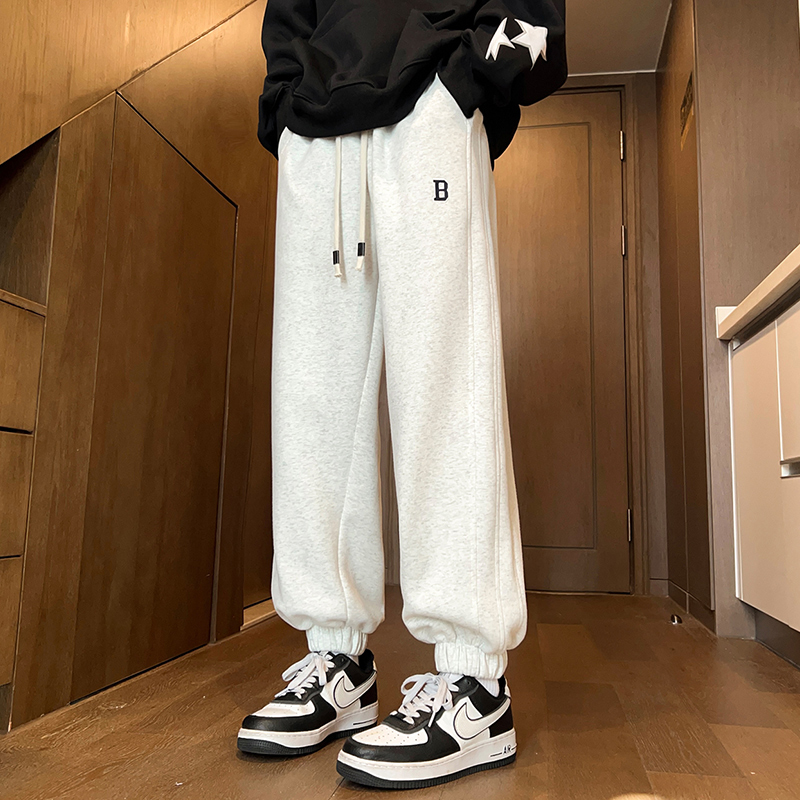 Autumn and winter American casual fleece knitted gray sweatpants men's loose drawstring versatile trendy sports leggings