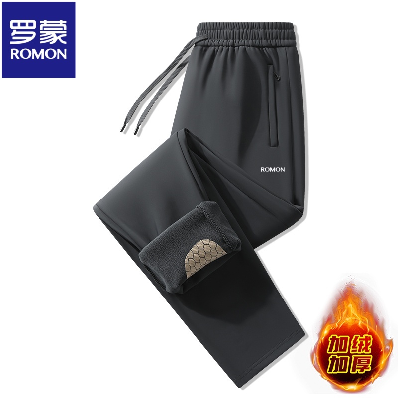 Romon/Romon/Romon fleece thickened sweatpants men's autumn and winter new loose casual straight-leg sweatpants warm pants
