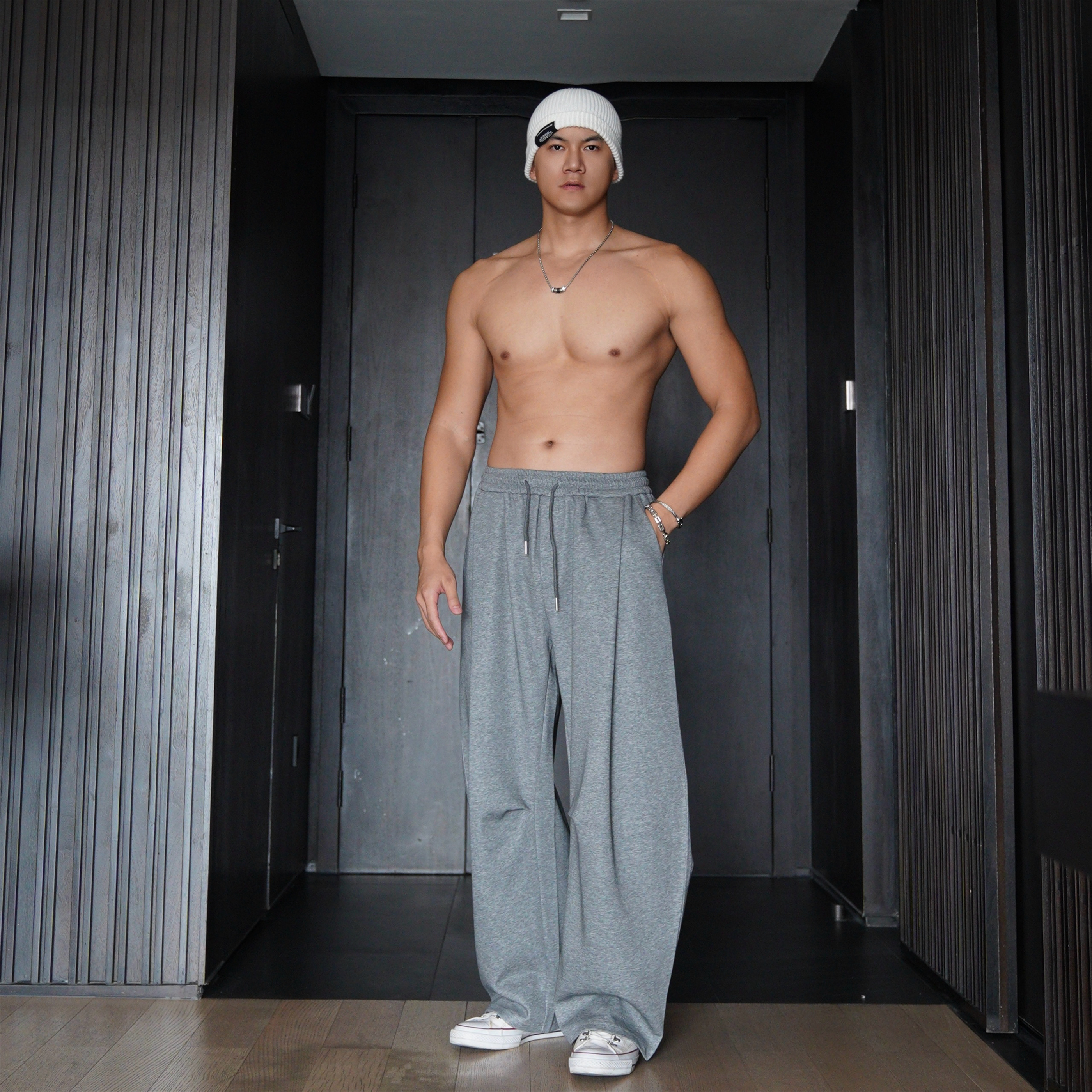 NEVERNEED loose casual fleece sweatpants for men and women fall and winter American drape A-line sports straight-leg trousers