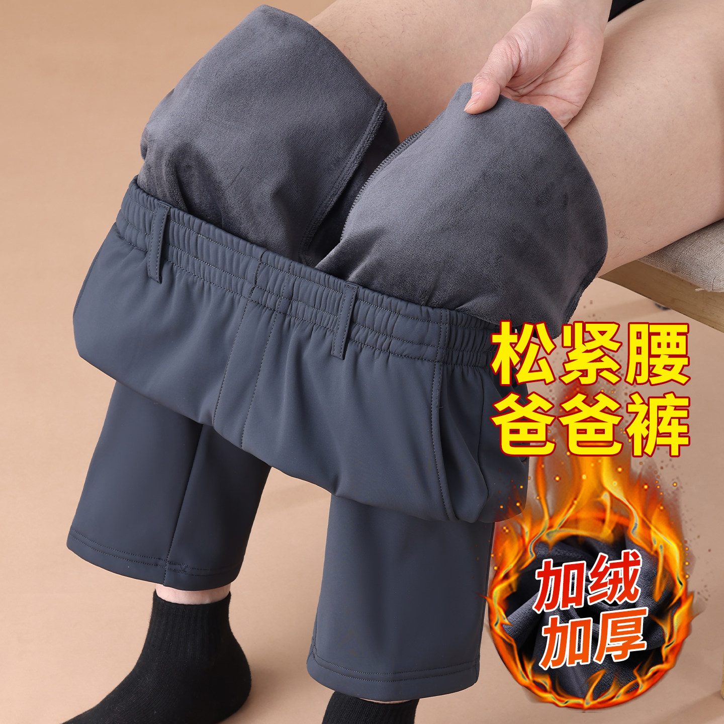 Winter fleece thickened sweatpants men's elastic waist slacks stretch iron-free high-waisted loose middle-aged and elderly dad pants
