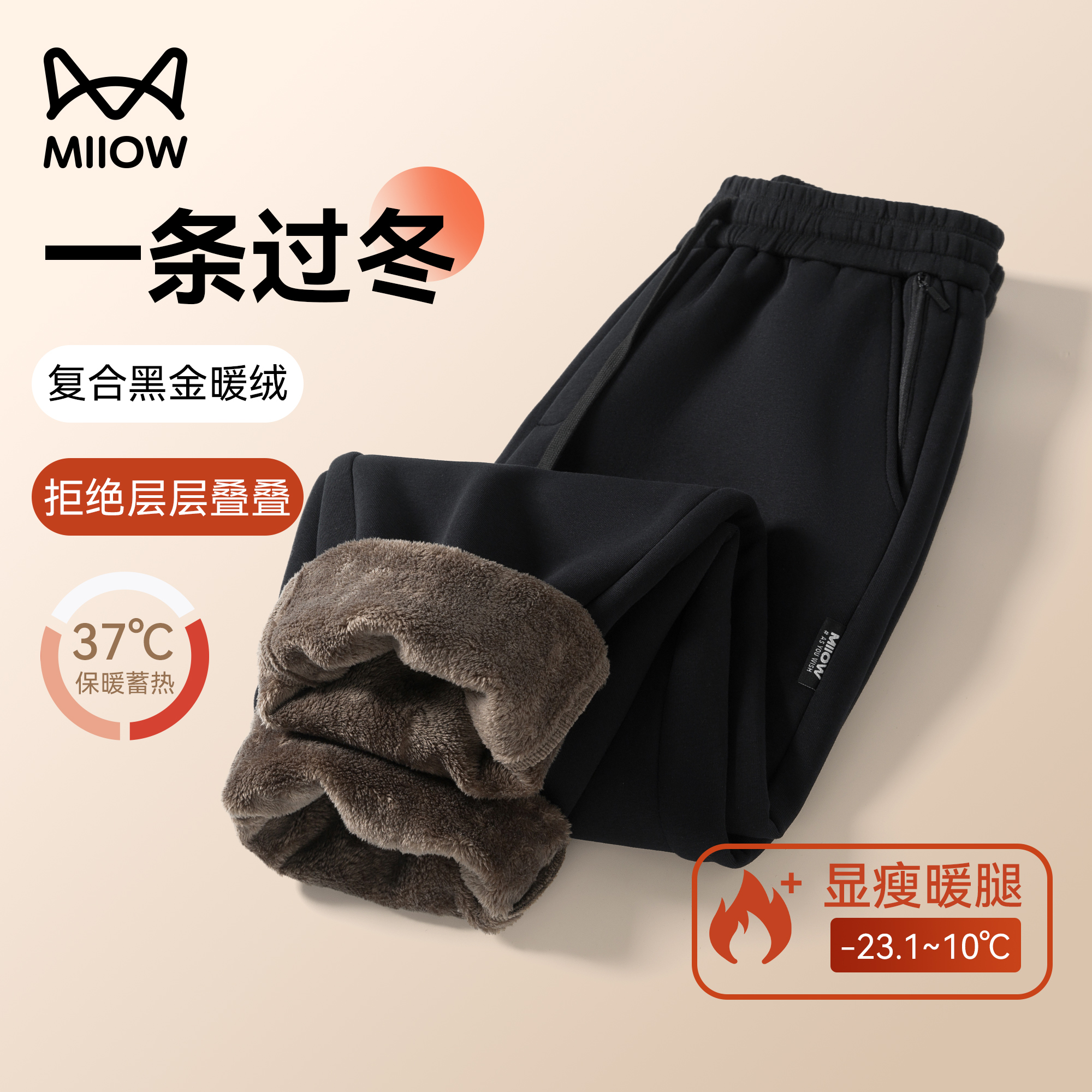 GENIOLAMODE black straight-leg casual pants men's autumn and winter fleece cutlass sweatpants