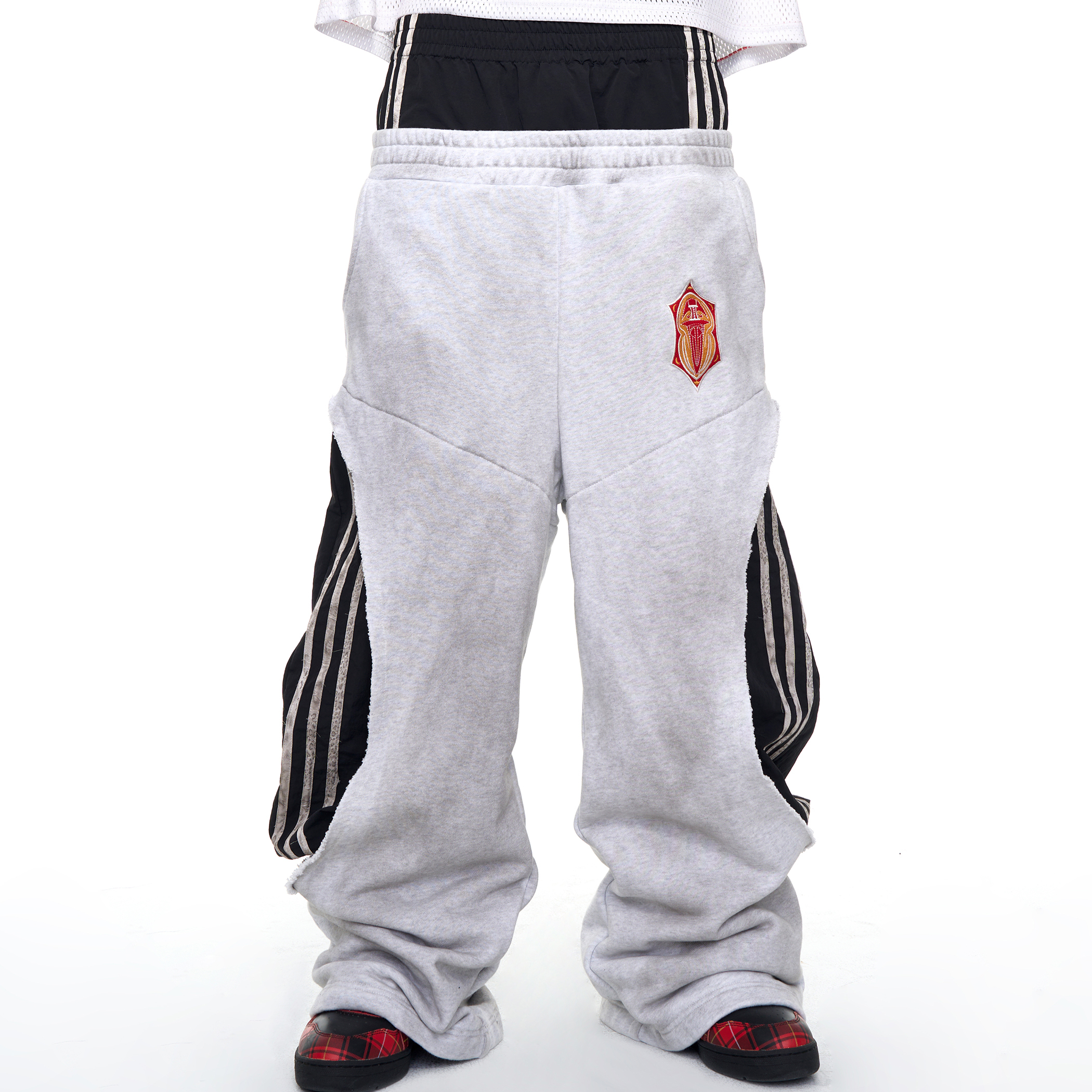 Fourth3ex 25FW Fake Two-Piece Double-Waisted Sweatpants Men's Autumn Three-Bar Stitching Contrasting Wide-Leg Pants