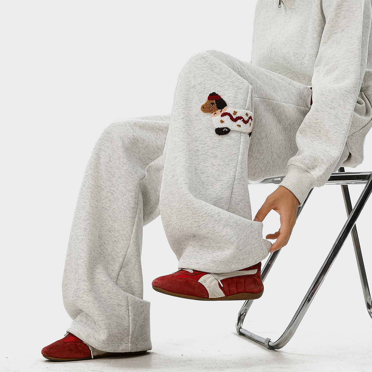 American heavy sausage dog sweatpants, men's and women's autumn trendy brand fleece thickened slacks, waist-like sweatpants