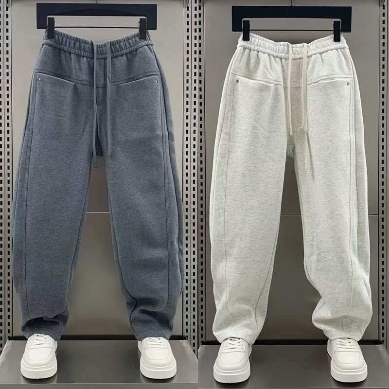 American scimitar pants, men's autumn and winter new slacks, trendy men's straight-leg pants, fleece solid color sports sweatpants