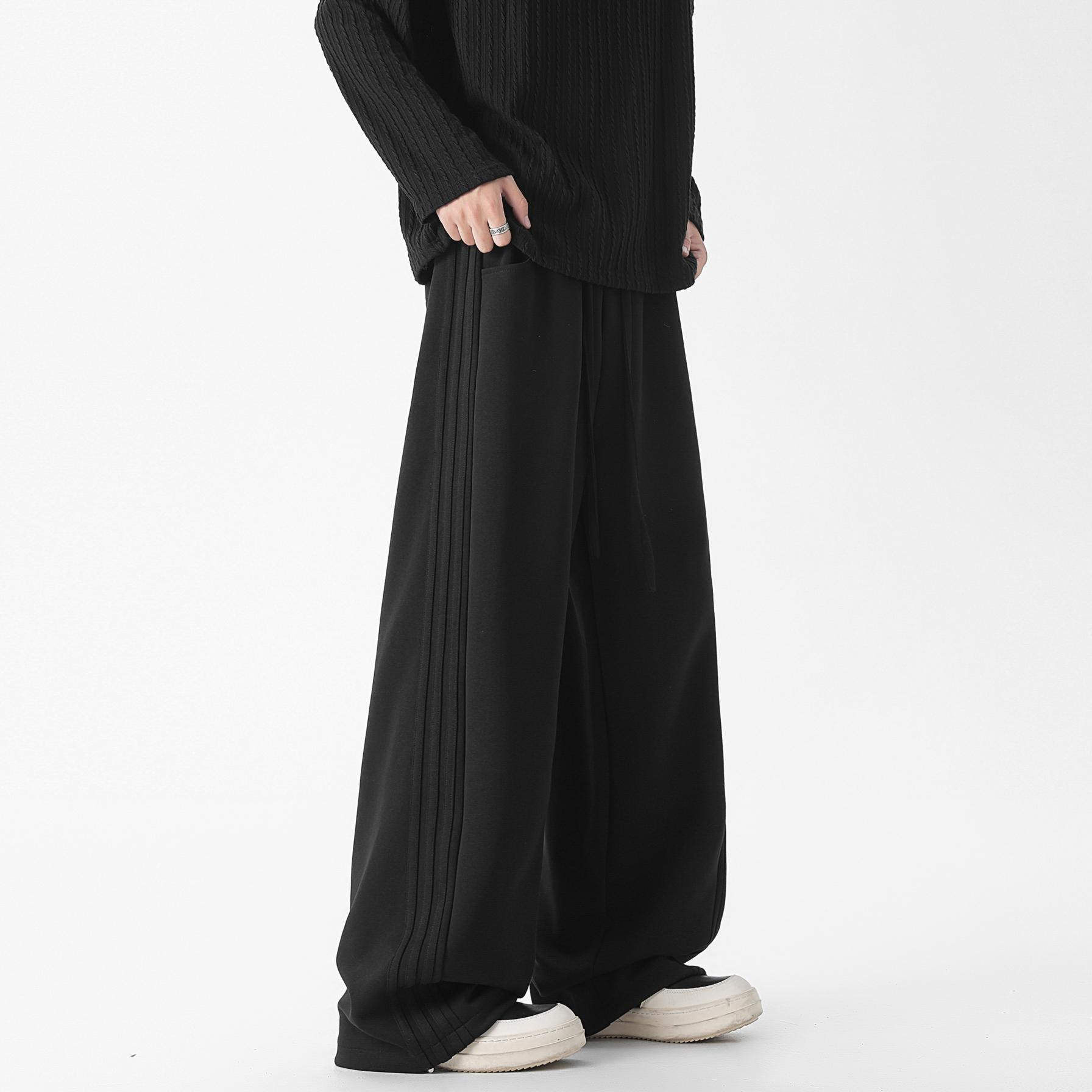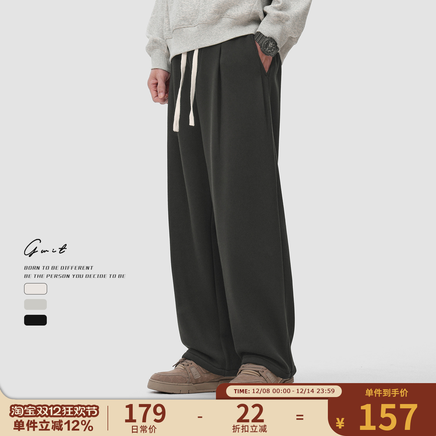 GWIT three-color fleece classic drape wide-leg sweatpants winter heavy thickened warm sports casual pants for men