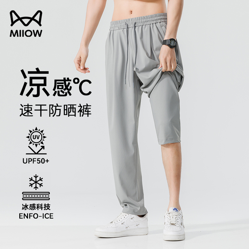 【Ice silk sunscreen pants】Cat man ultra-thin quick-drying slacks men's summer loose drape straight sweatpants