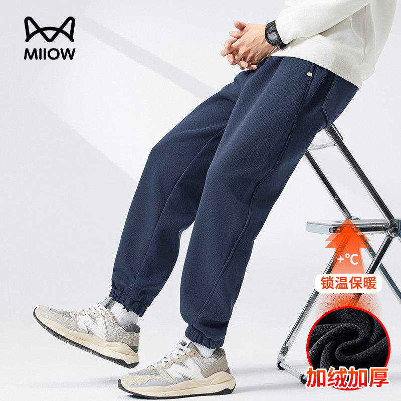 Cat man sweatpants for boys fall and winter new trousers knitted casual leggings sweatpants men's fleece thickened pants