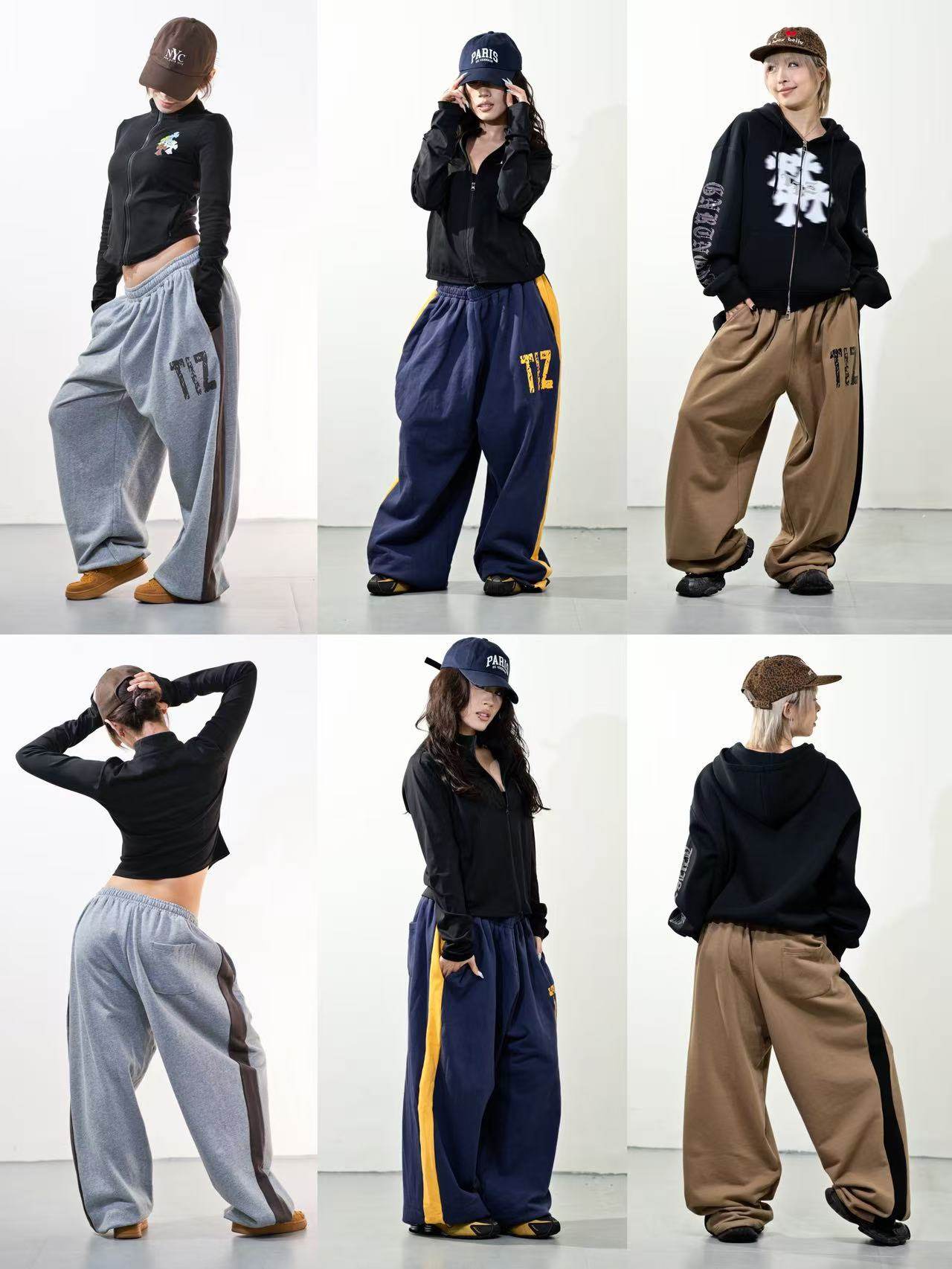 This feels like Paris!! Heavy sand washing, fleece thickening, arc split sweatpants girl!