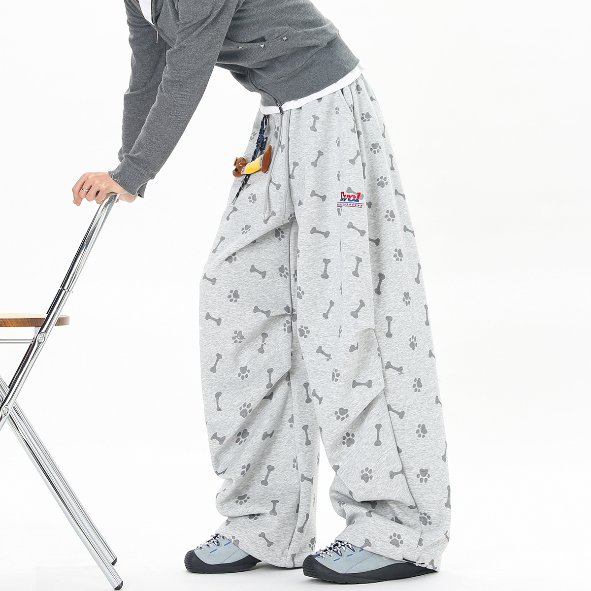 American puppy pendant full print sweatpants for women and men in autumn new trendy brand loose lazy wind pleated wide-leg slacks