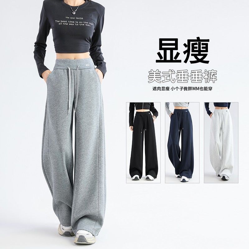 Narrow banana wide-leg pants women's 2025 new autumn and winter gray small fleece casual straight-leg sports sweatpants
