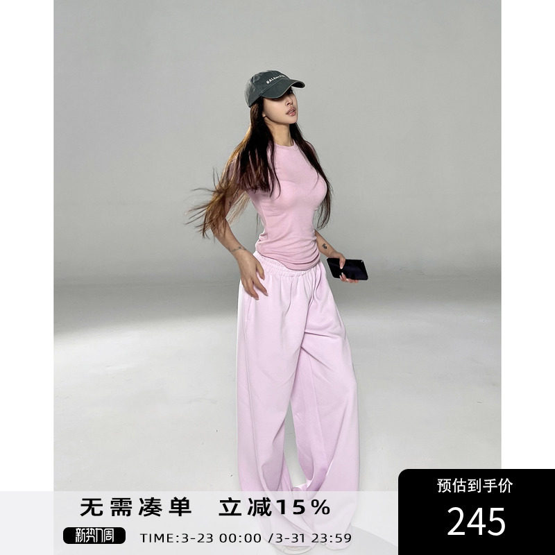 Skims Kardashian 26 Pre-Spring New Color Thin fleece drawstring lace-up elastic stretch waist sports straight-leg slacks