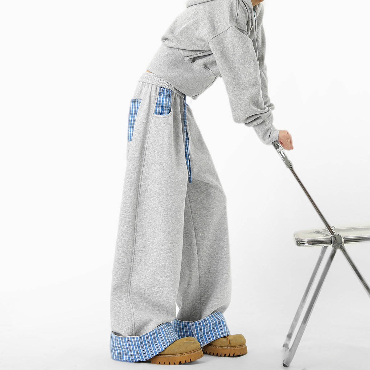 American retro contrast plaid spliced sweatpants women's and men's fall 2025 BF loose drape slimming wide-leg slacks