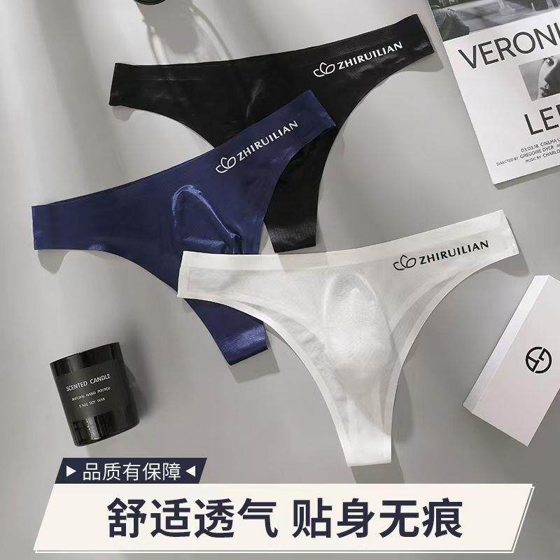 Ice silk seamless men's thin sexy underwear men's comfortable U convex pocket pocket breathable sports one-piece briefs toe