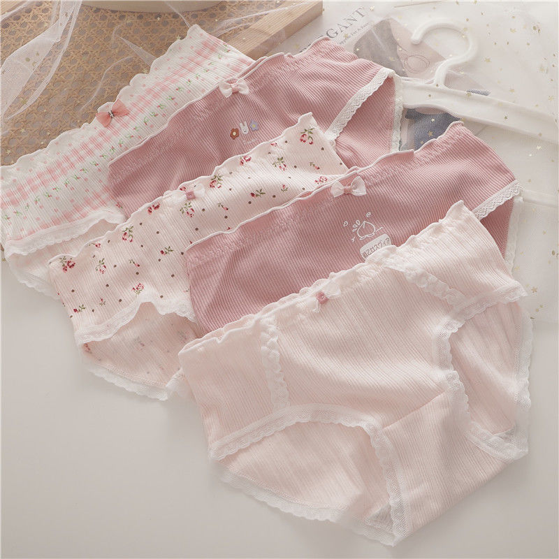 5 pairs of pink girls' cotton underwear girls mid-waisted Japanese cute antibacterial student cotton large size summer thin
