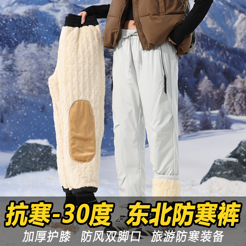 Snow town Harbin minus 40 degrees cold charge pants men's plush waterproof and windproof Northeast cotton pants ski women's travel