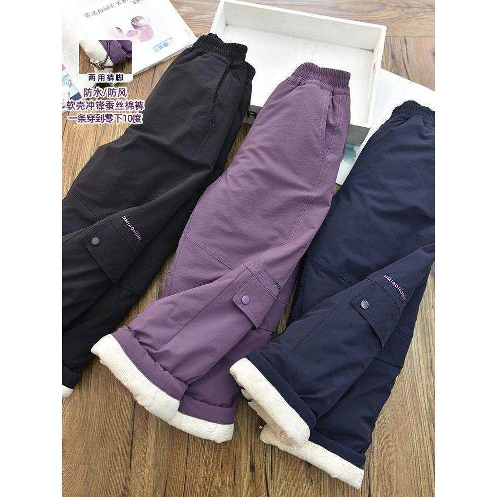 Softshell jacket pants, girls' windproof warm silk cotton pants, children's fleece ski overalls, sweatpants for the winter