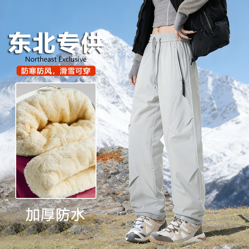 Northeast Harbin 3-in-1 assault pants women's 2026 new winter fleece thickened coldproof waterproof ski pants for men
