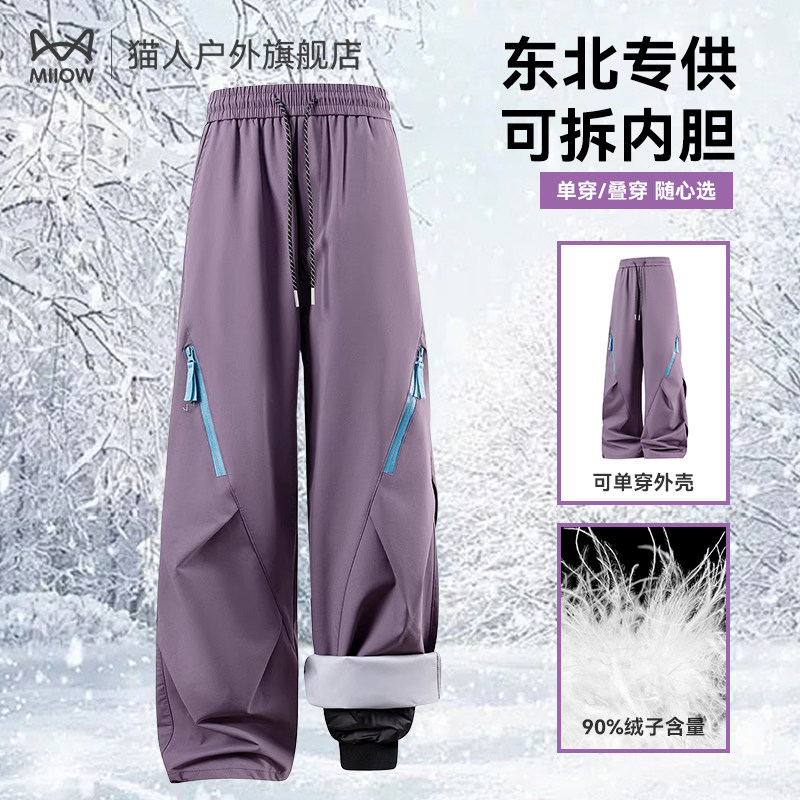 Warm cotton pants for women, fleece in winter, thickened waterproof and windproof, wear minus 40 degrees in the northeast, extreme cold charge pants, men