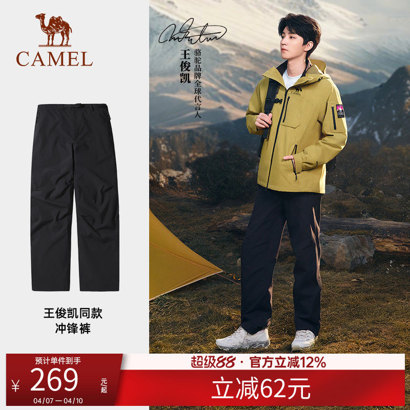 Camel outdoor assault pants for men in spring windproof waterproof and breathable wear-resistant tear resistance hiking soft shell trousers for women