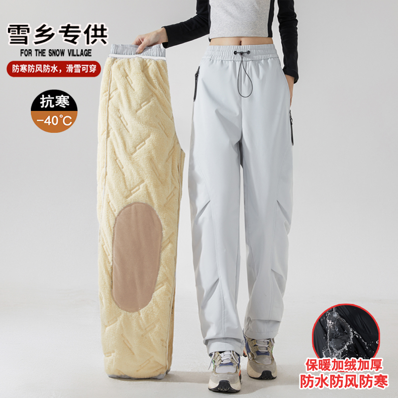 Warm cotton pants for women, fleece thickened in winter, windproof and waterproof and cold-proof ski charge pants for men at minus 40 degrees in the northeast