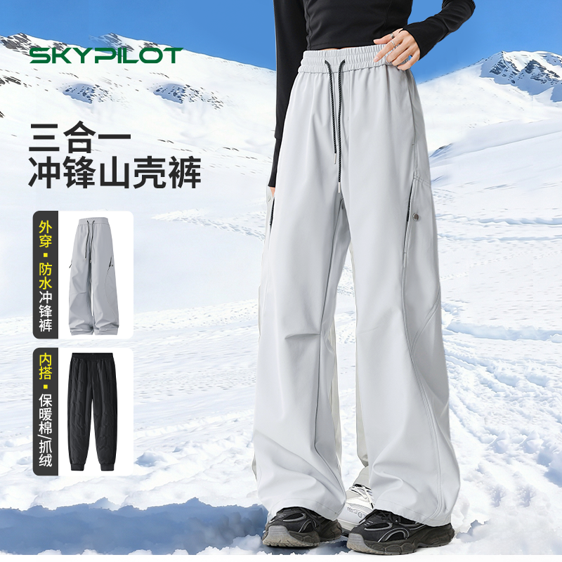 SkyPilot charging pants women's fleece thickened winter northeast windproof waterproof and coldproof ski pants warm cotton pants men